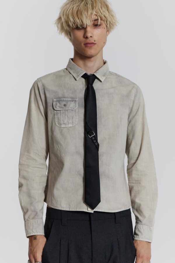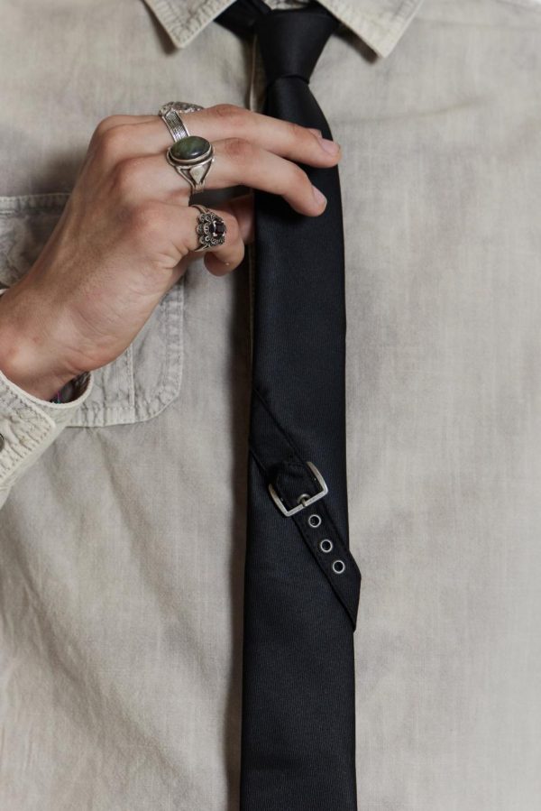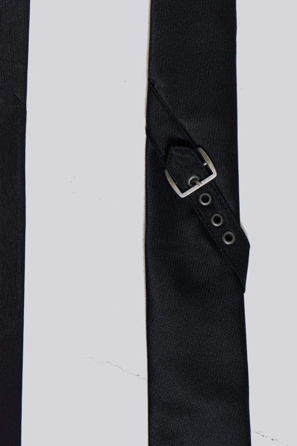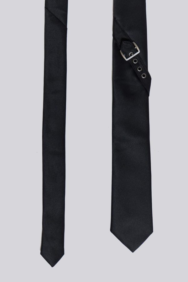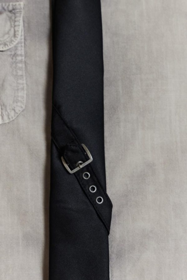 The Black Buckle Tie features antique silver eyelets along with a functional buckle.