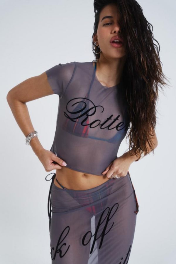 Beach Co-Ords | Women Jaded London Spoiled Rotten Mesh T-Shirt