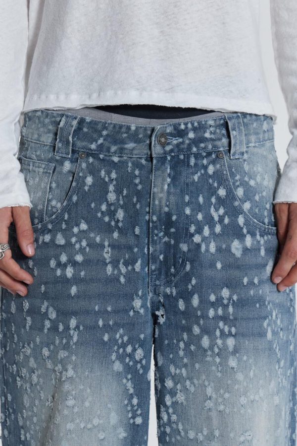 Elevate your wardrobe with the Mid Blue Shredded Colossus jeans. Crafted from a distressed denim in a mid blue vintage wash, these jeans feature belt loops at the waistband, x5 pocket styling in a heavy non-stretch denim.