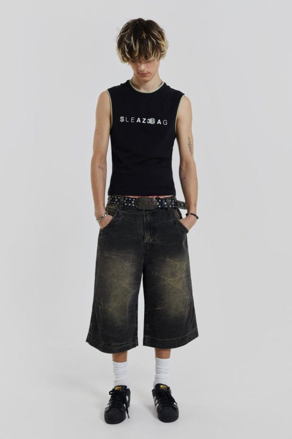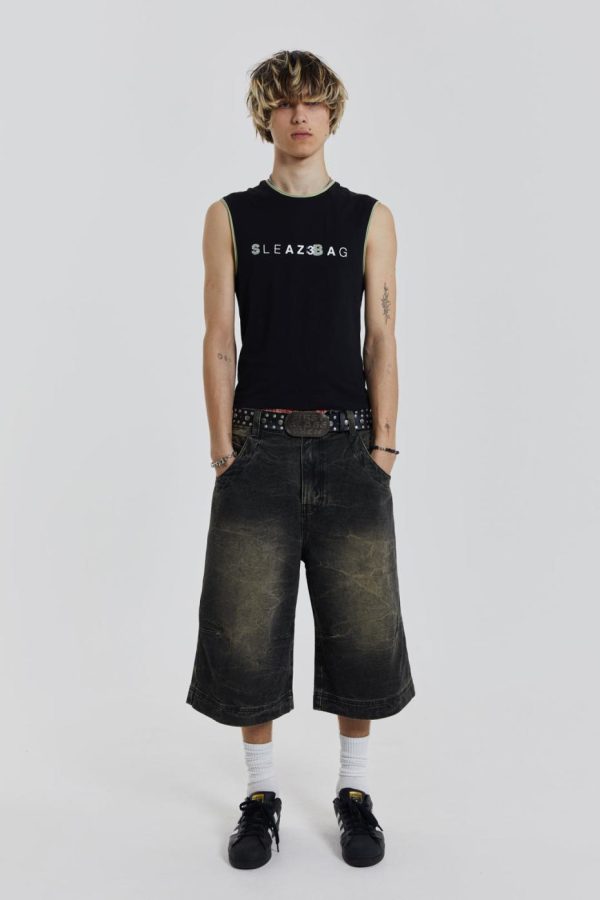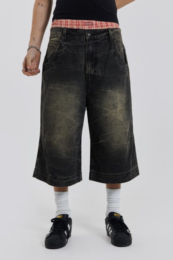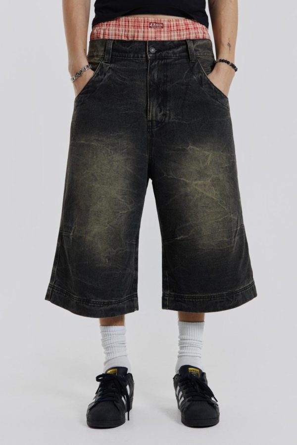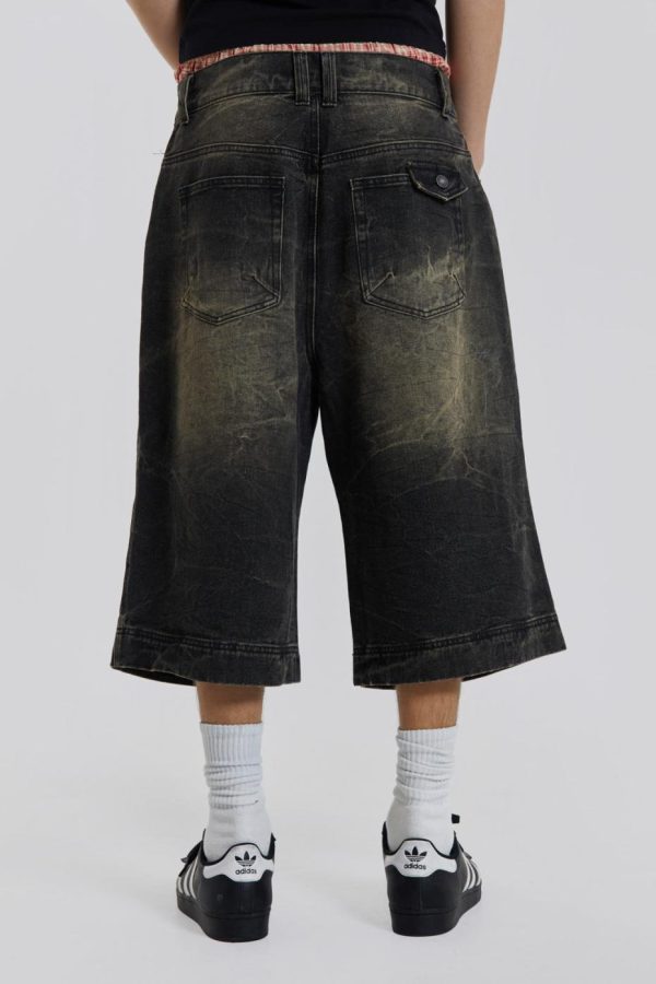 Denim & Jeans | Men Jaded London Axle Black Crease Wash Denim Jorts