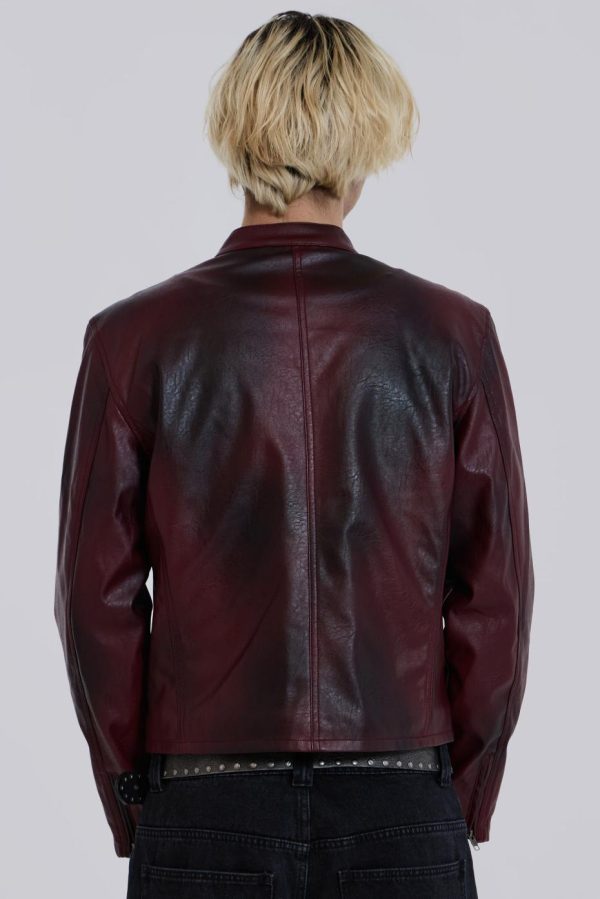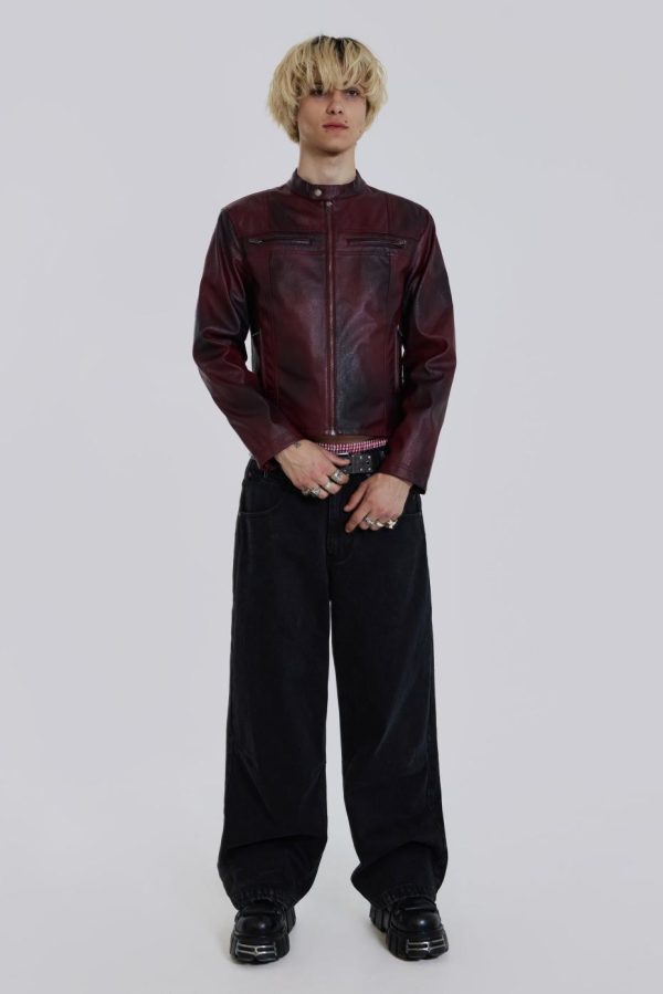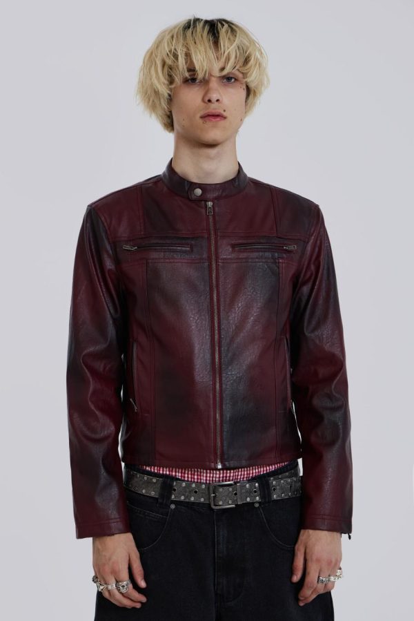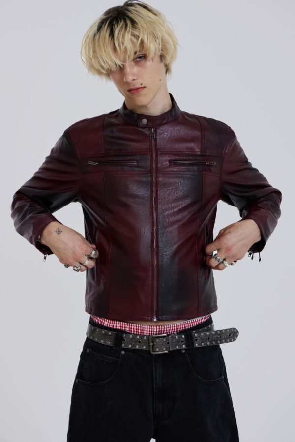 Introducing the Oxblood Piston Jacket – Crafted from a faux leather PU fabric, this jacket features a tonal oxblood colourway with a shrunken fit moto style. The jacket boasts a slightly cropped fit with zipper openings at the cuffs. Co-ordinate with the matching Oxblood Faux Leather Pants for a coordinated look.