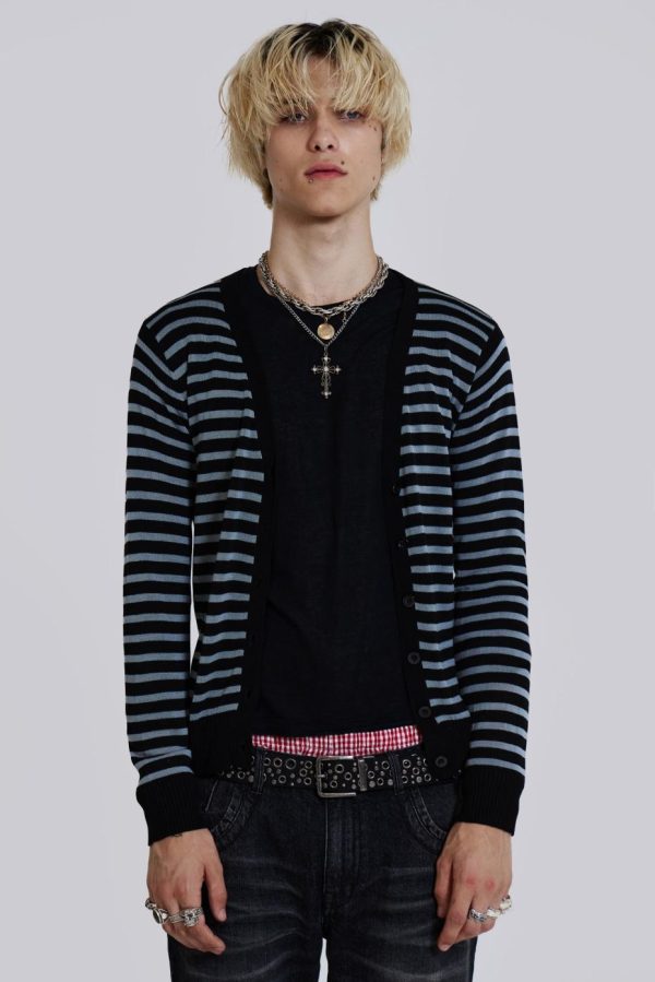 Crafted from a fine-knit fabric with a shrunken fit, the Sid Stripe Cardigan has been designed with grey-blue and black stripes, black rib detailing at the hem and cuff, and black placket with a button up front. For a more oversized fit, size up.