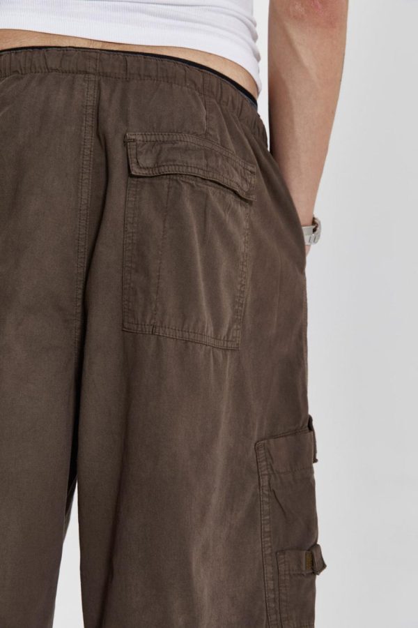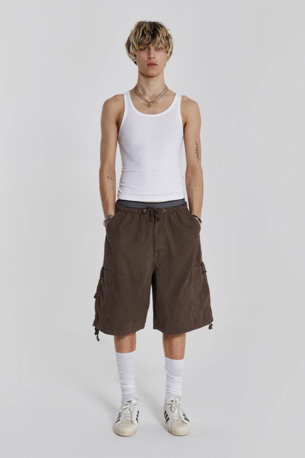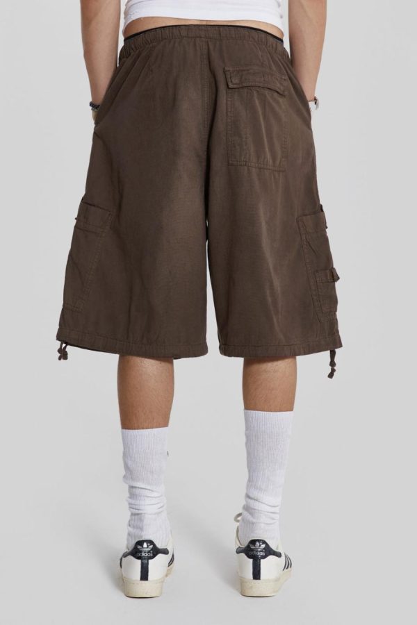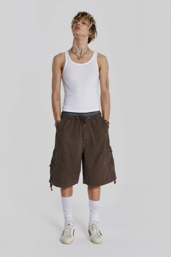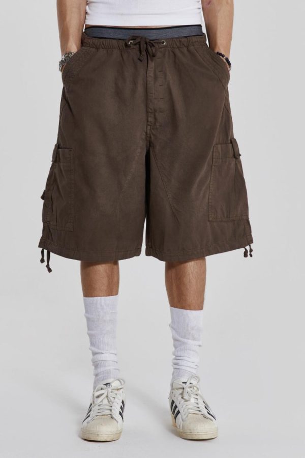 Discover the unparalleled comfort and style of the Brown Parachute Cargo Shorts. These shorts feature an oversized fit and six-pocket styling, accompanied by an elasticated waistband and adjustable cotton drawcord for added flexibility.