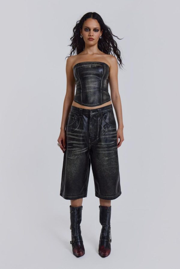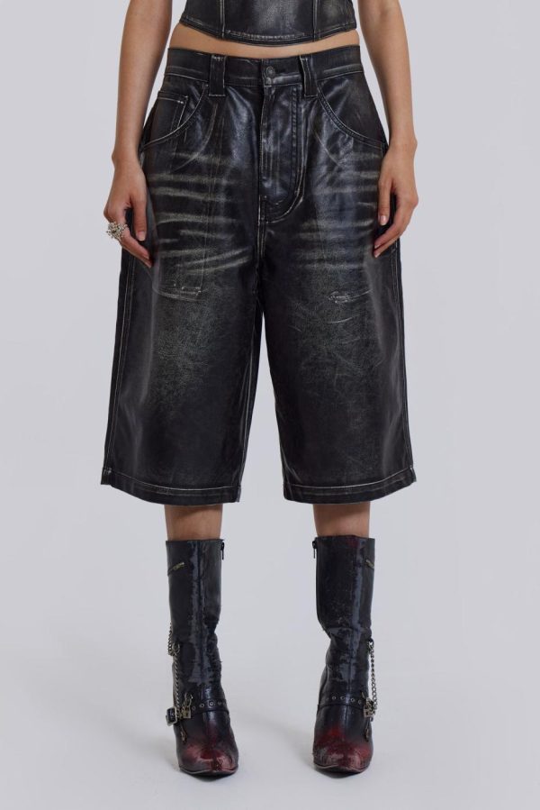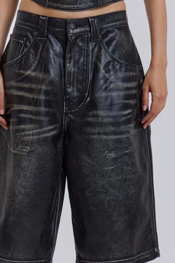 Introducing the Ash Shorts – crafted from a faux leather PU fabric, these shorts feature a unique heavy acid wash finish. With five pocket jean styling and a Colossus jort fit.