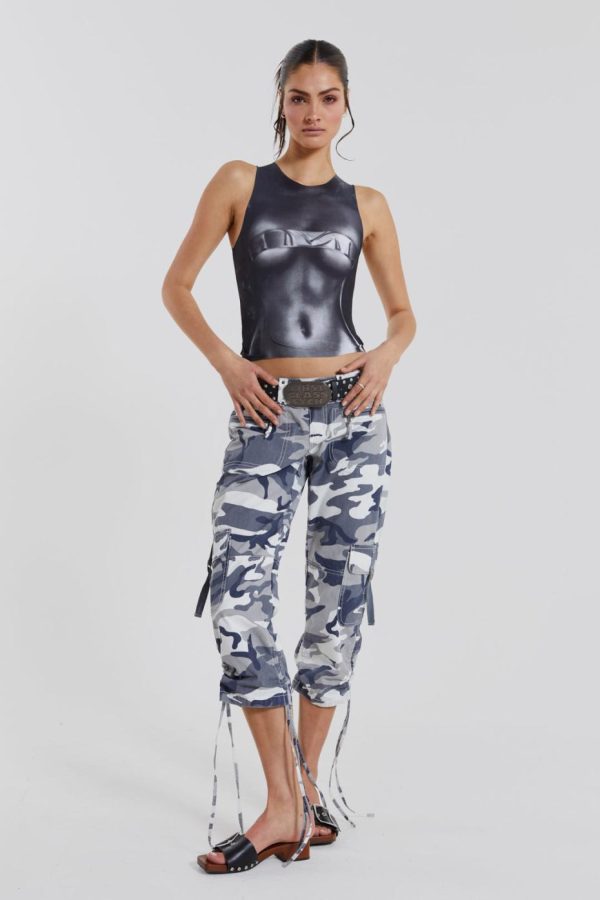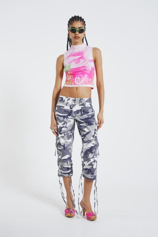 Our Camo Capri Shorts are a wardrobe must-have. Featuring an all over camouflage print, cropped length and slim fit, these shorts are detailed with classic cargo pockets and hardware details. Finished with belt loops and a drawcord hem for an adjustable fit.