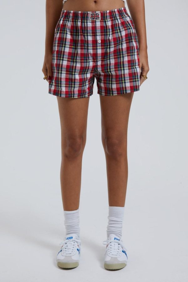 Crafted from 100% cotton, the Multi Tartan Boxer Shorts feature an elasticated waistband and finished with a Union Jack jacquard woven label and button fastening.