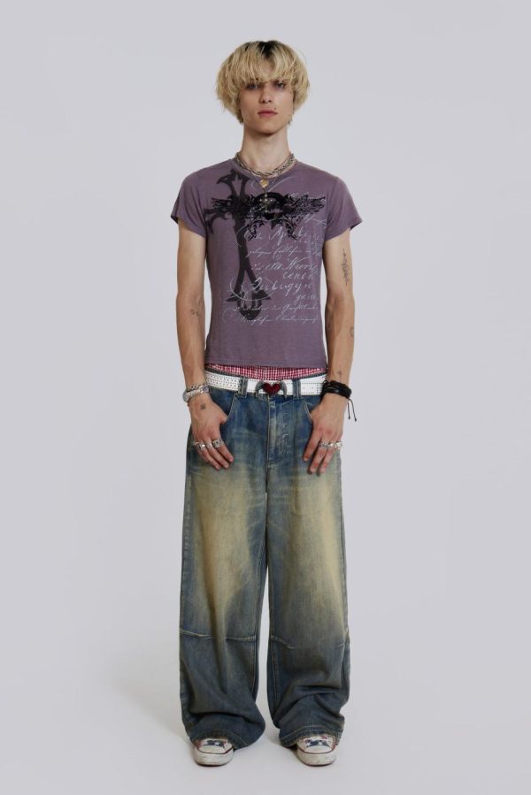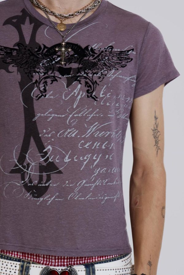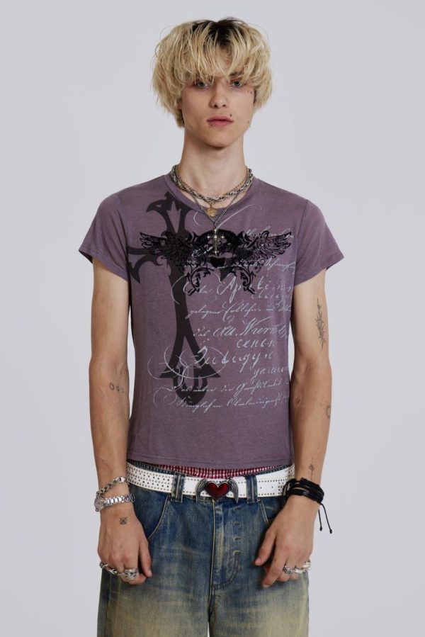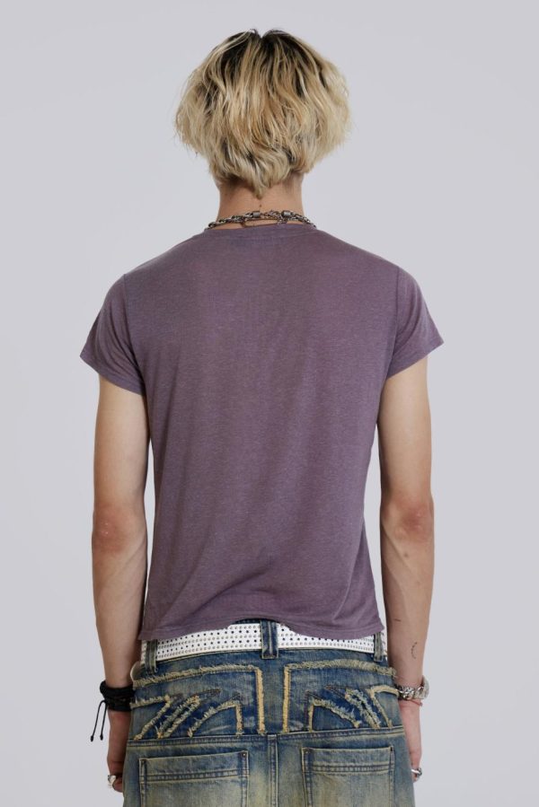 Introducing our Saintly Tee; crafted from lightweight, sheer slub jersey in a washed purple colourway, this short sleeve t-shirt has been designed with a shrunken fit.
